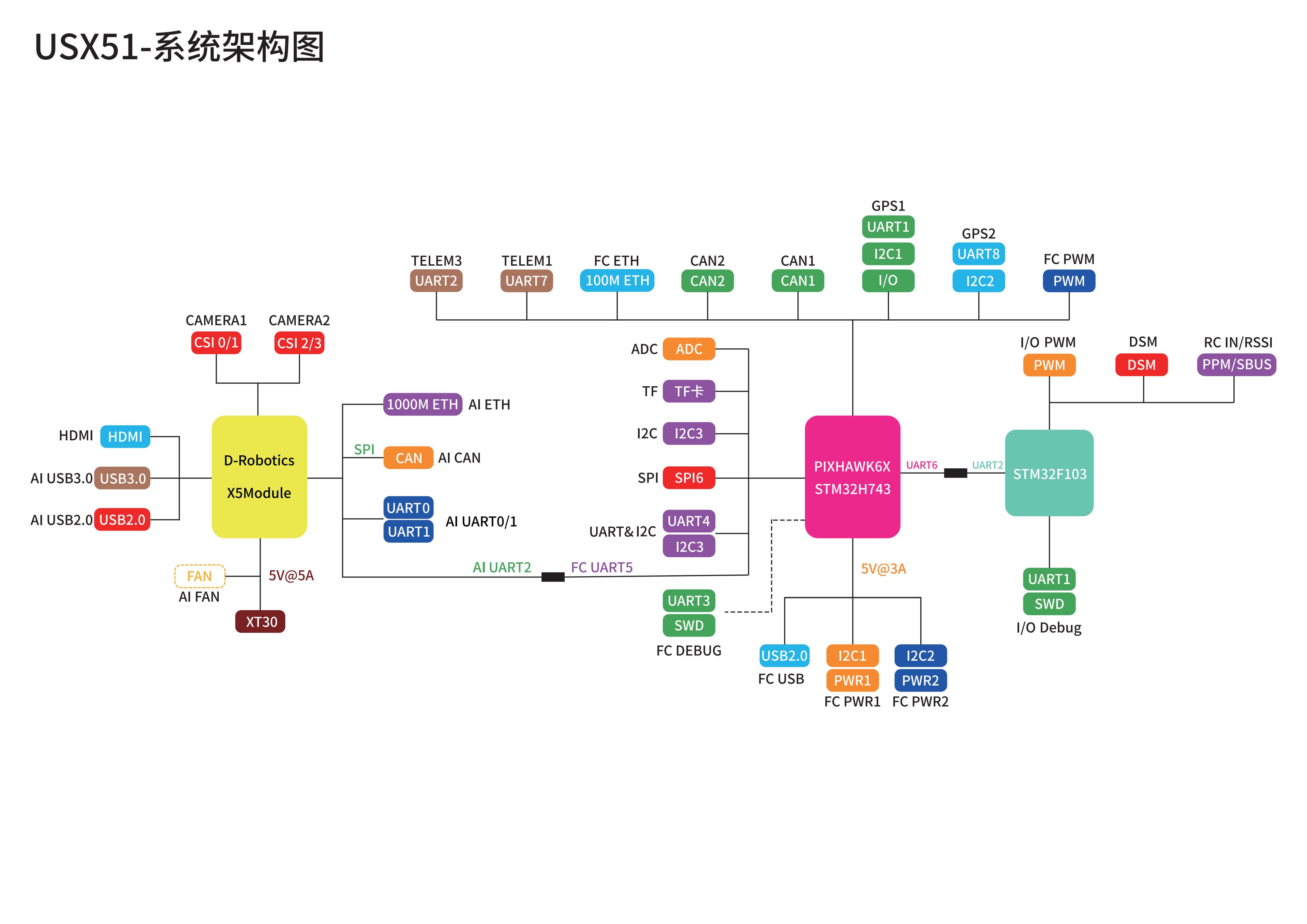 RDK X5 Module 的AI UART2即/dev/ttyS2与 Pixhawk 6X的 FC UART5即/dev/ttyS4可以通过内部连接串口进行通信,如图所示: