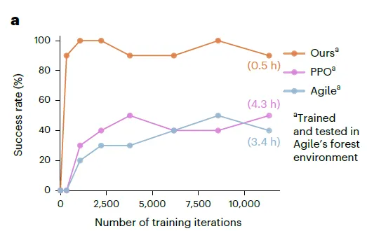 In a real forest environment, the drone achieved flight speeds of up to 20 meters per second, twice the speed of existing imitation learning-based approaches. Zero-shot transfer was achieved in all test environments. The system operates without GPS or VIO positioning information and can adapt to dynamic obstacles.