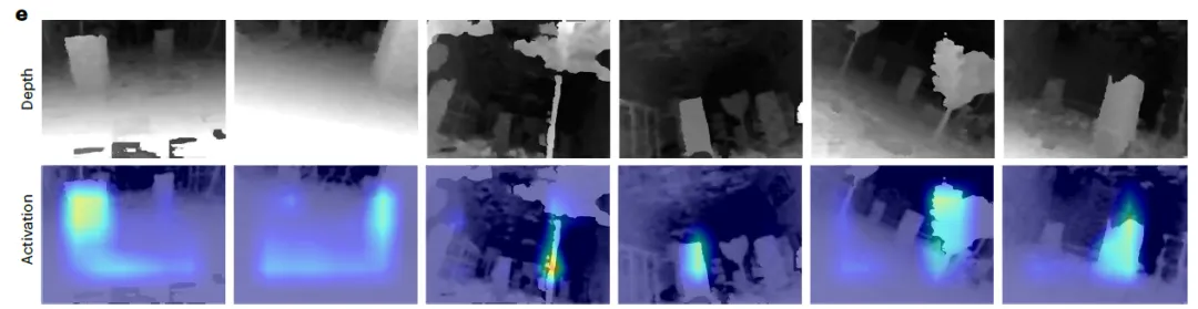 The figure below shows the input depth map (top row) and its corresponding activation map (bottom row) under different flight states.